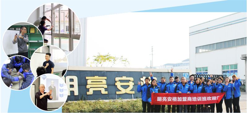 明亮安格開設(shè)培訓(xùn)班,以成熟的培訓(xùn)機(jī)制,特聘專業(yè)講師和優(yōu)秀加盟商為加盟商開展企業(yè)文化、產(chǎn)品知識(shí)、測(cè)量安裝、銷售技巧、活動(dòng)策劃、市場(chǎng)推廣、渠道拓展、公關(guān)禮儀等專題培訓(xùn)。